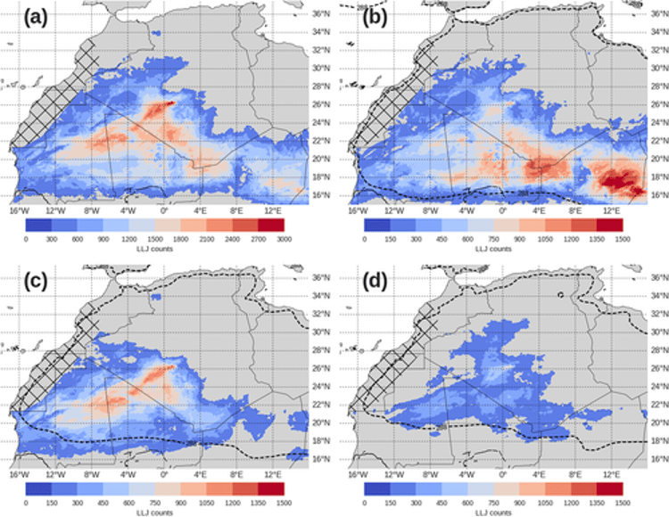 - Low-level jets are of tertiary importance, they are responsible for 14% of dust over Bordj Badji Mokhtar.